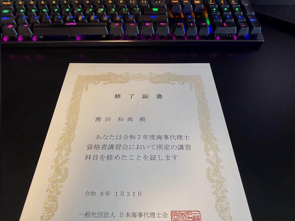 2026年1月31日 海事代理士資格者講習会に参加させて頂きました。 多くの素晴らしい先生方にお会いさせて頂き、大変勉強になりました。ありがとうございます。今後とも、何卒、宜しくお願い申し上げます。 海事代理士 海事代理士